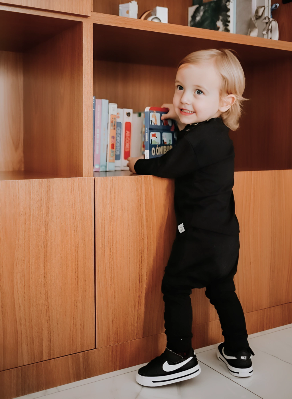 O Conjunto Malhão é lindo, elegante e extremamente confortável! Aquele básico com toque diferenciado, a parte de cima com modelagem tipo T-shirt manga longa, com abertura no ombro esquerdo com 3 botões caseados em madeira que facilita a passagem pela cabeça do bebê, com barra arredonda que dá um charme bem especial à peça.
